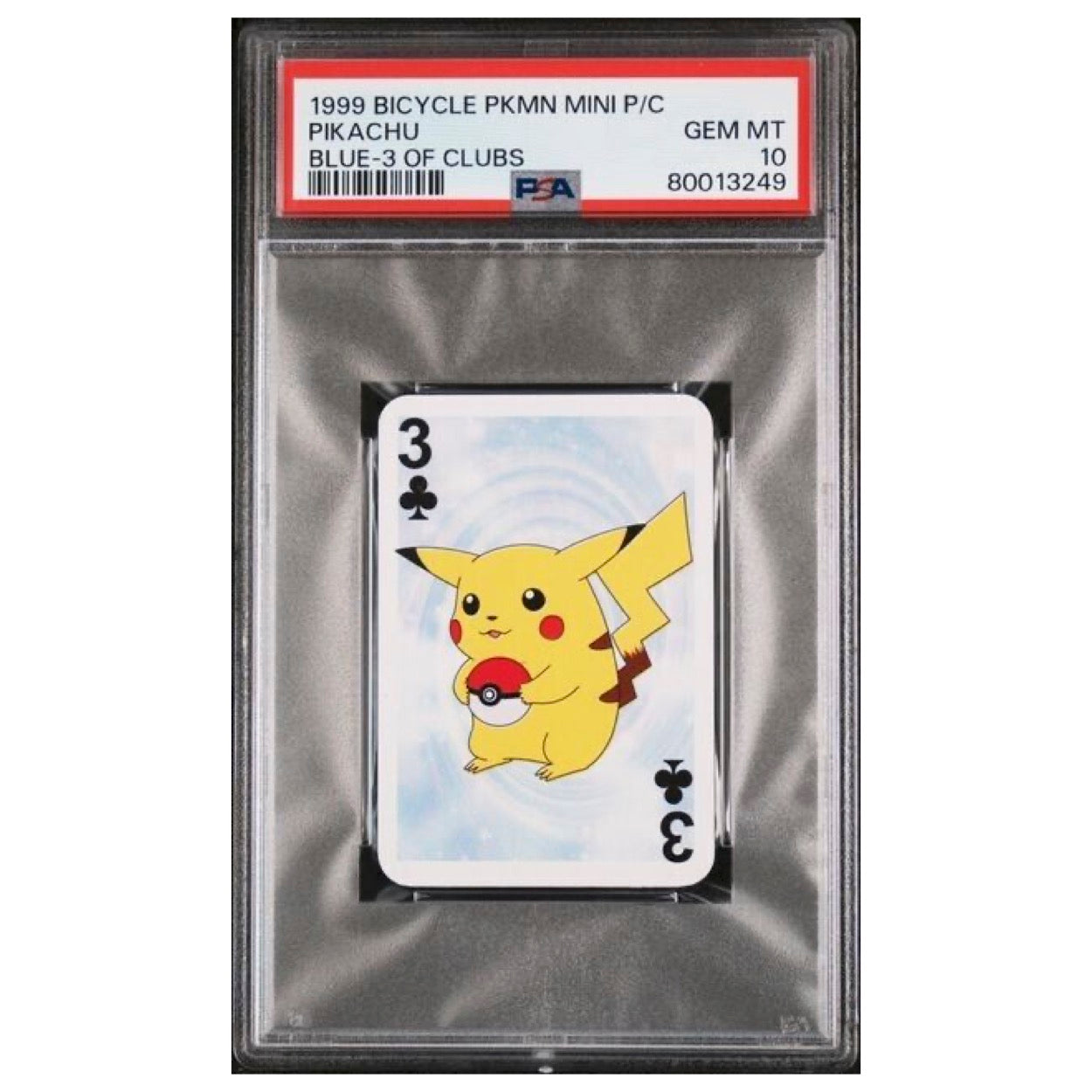 1999 Bicycle Pokémon Mini Playing Cards Blue Deck Pikachu 3 of Clubs PSA 10