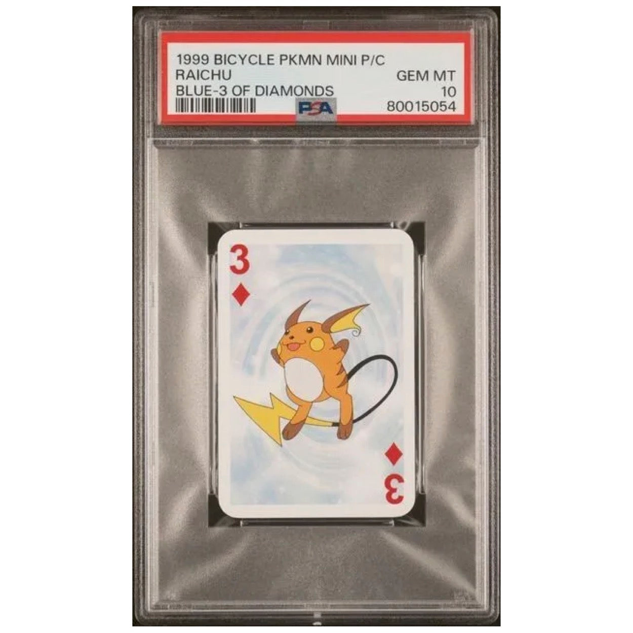 1999 Bicycle Pokémon Mini Playing Cards Blue Deck Raichu 3 of Diamonds PSA 10